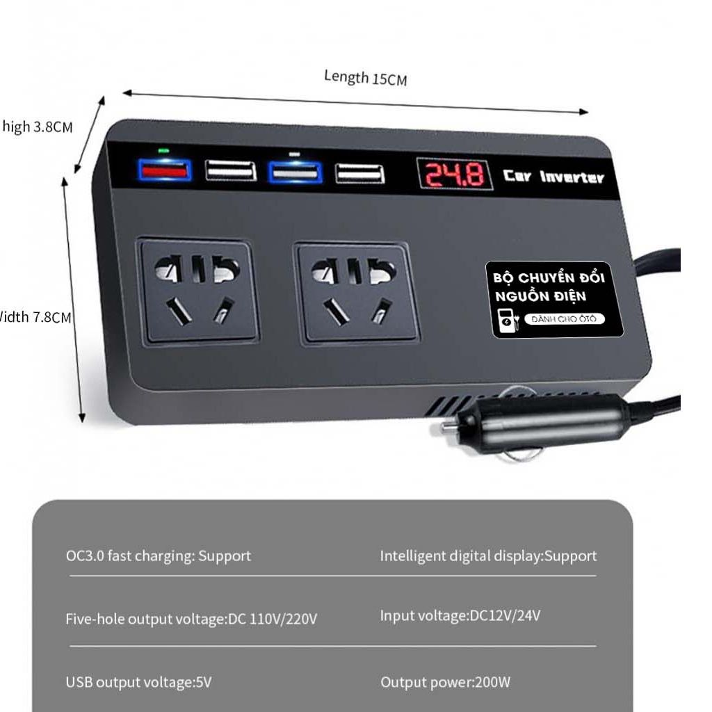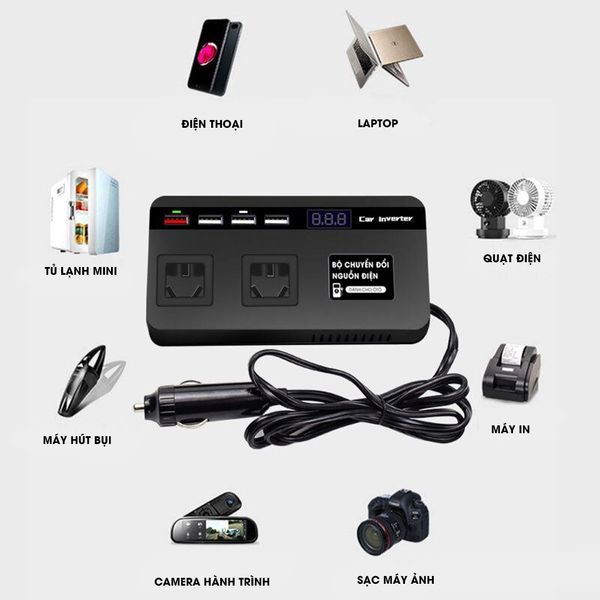 Adapter Đổi điện tẩu sạc 12v ra 220v cắm laptop, Bộ Chuyển Đổi Nguồn Điện 12v Sang 220v 12v / 24v Chuyên Dụng Cho Xe Hơi