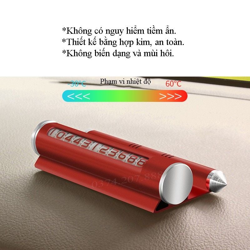 Bảng số điện thoại ô tô có giá đỡ, tặng kèm sáp thơm kiêm búa phá kính chất liệu kim loại cao cấp