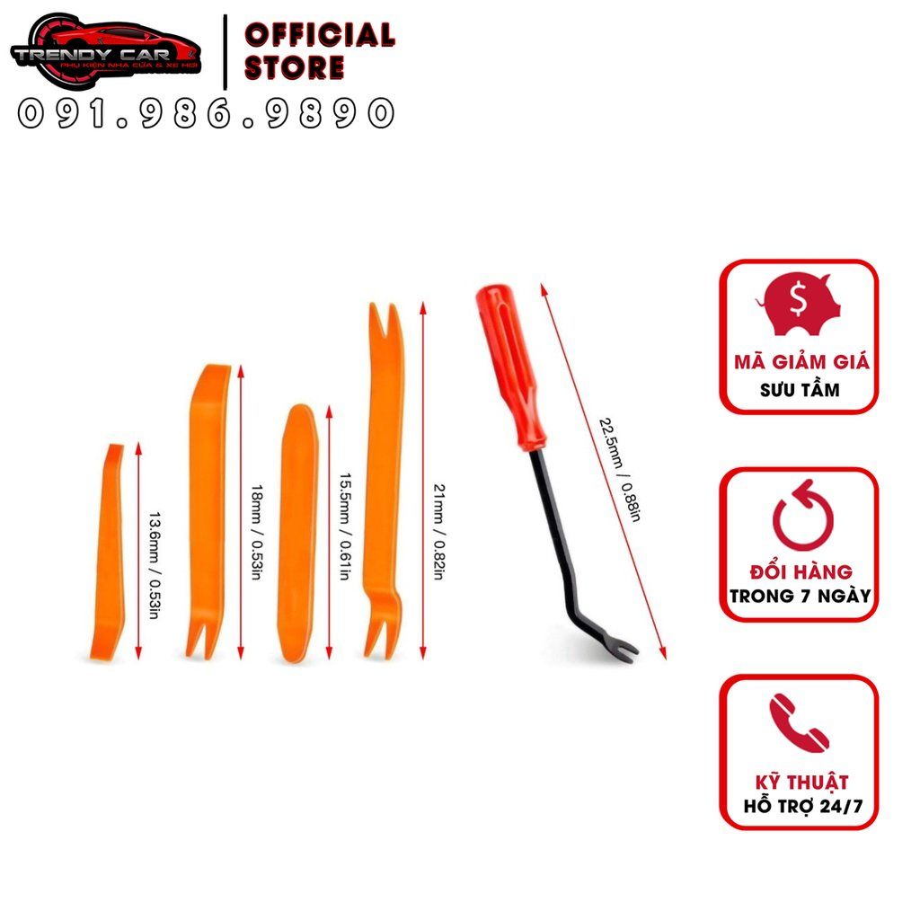 - Bộ 4 món dụng cụ tháo, mở nội thất ô tô, xe hơi đáp ứng được các nhu cầu như trên.