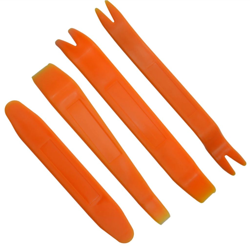 Bộ dụng cụ 4 món tháo, mở đồ nhựa ô tô, xe máy, laptop … được làm từ chất liệu nhựa tổng hợp. bền, dẻo, dai, chuyên dùng để tháo mở đồ nhựa, nội thất ô tô, giúp thao tác nhanh, an toàn, tránh để lại dấu vết khi tháo ráp. Các thanh cạy có nhiều hình dạng, kích thước lớn, nhỏ, dày, mỏng, mềm, cứng khác nhau, đáp ứng được những thao tác của bạn. Giúp bạn hoàn thành công việc nhanh hơn, tốt hơn.