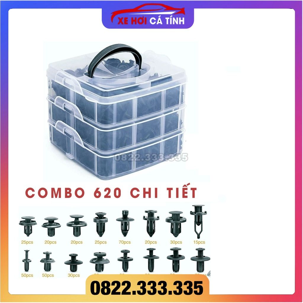 Bộ 620 Xe Ô Tô Kẹp Lai Dây Khóa Cửa Viền Ốp Lưng Đinh Tán Bình Giữ Nhiệt Nắp Động Cơ Thích Hợp Cho Fender Phụ Tùng Ô Tô