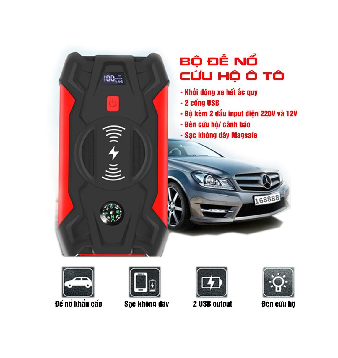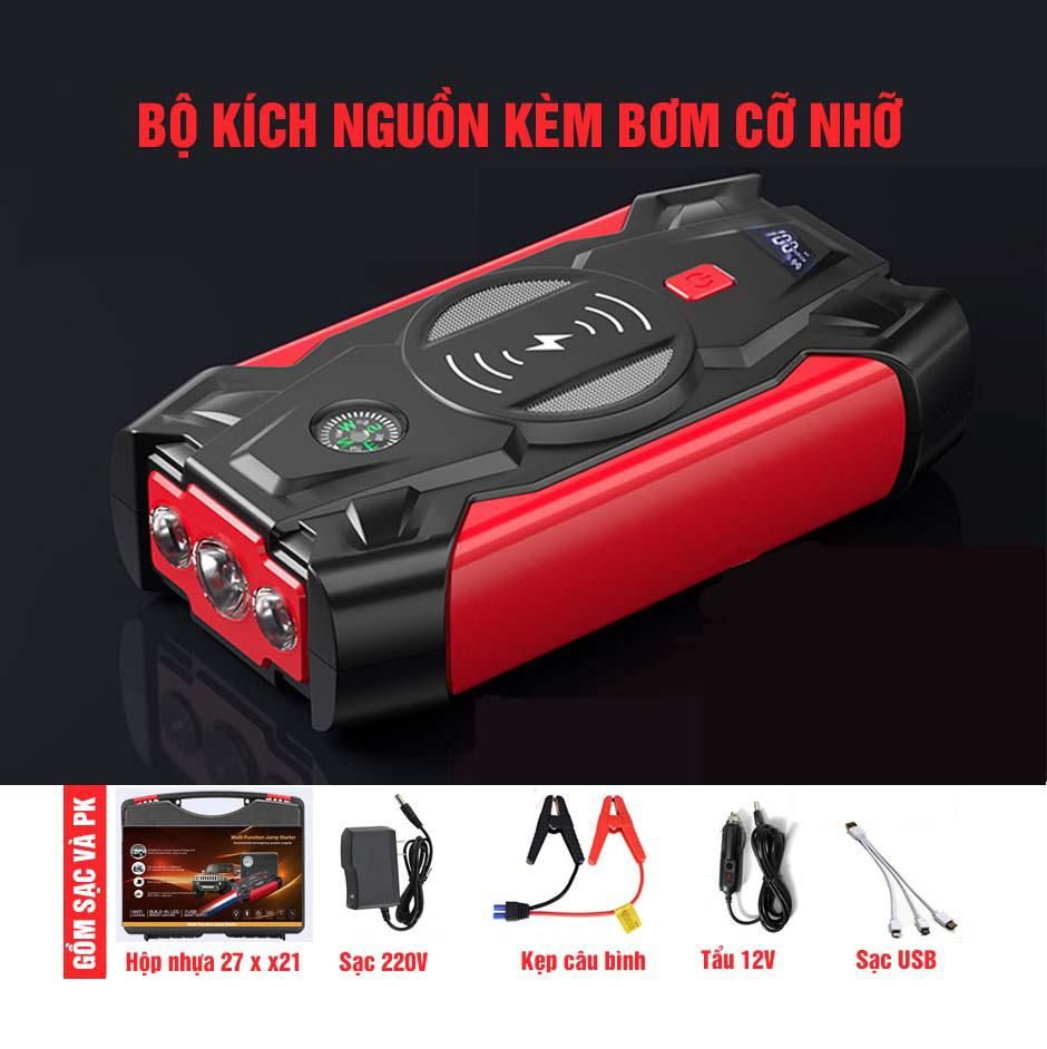Bộ đề nổ bình ắc quy 12v cứu hộ ô tô xe máy công suất lớn kiêm sạc dự phòng không dây 39.800 mAh