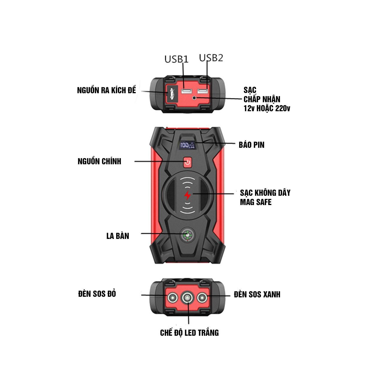 BỘ KÍCH ĐỀ BÌNH ẮC QUY CẦM TAY CHUYÊN DÙNG CHO XE Ô TÔ KIÊM SẠC ĐA NĂNG MAGSAFE