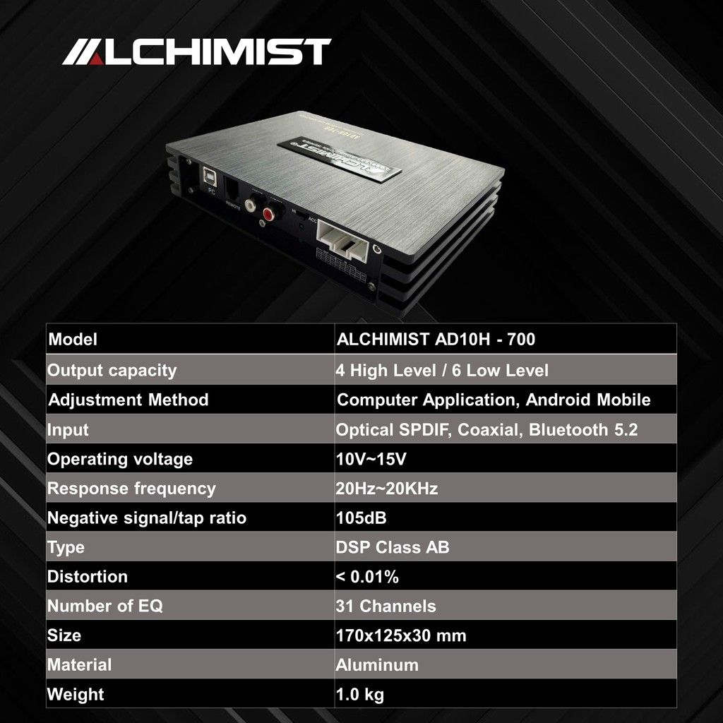 Bộ Khuếch Đại Xe Hơi DSP Alchimist AD10H-700 10 Kênh - Tích hợp phần mềm Android và App Máy tính PC cắt tần chỉnh độ trễ