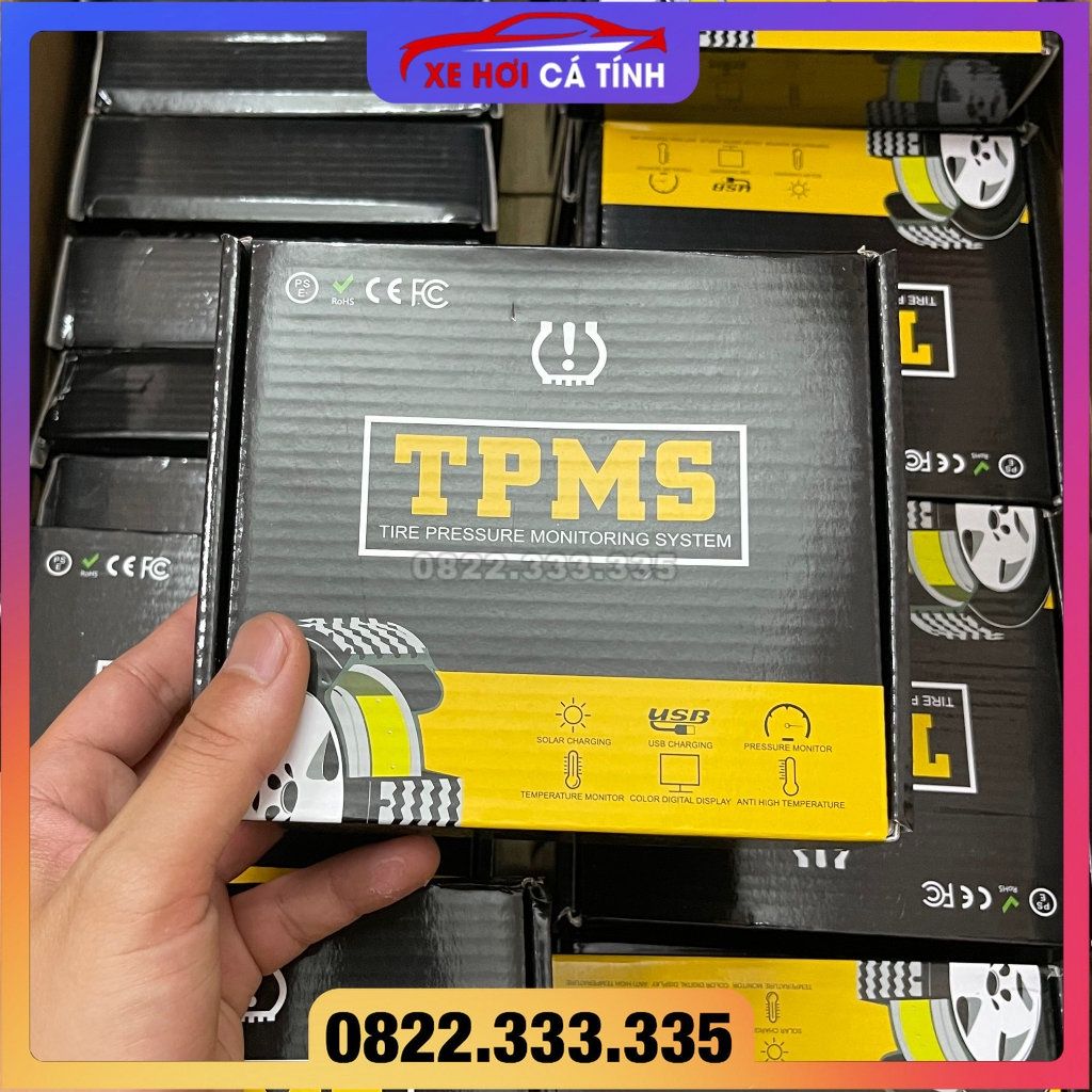 Cảm biến áp suất lốp TPMS cảnh báo Tiếng Việt 2023 van TRONG màn hình LED đa sắc bản quốc tế pin NL mặt trời BH 12 tháng