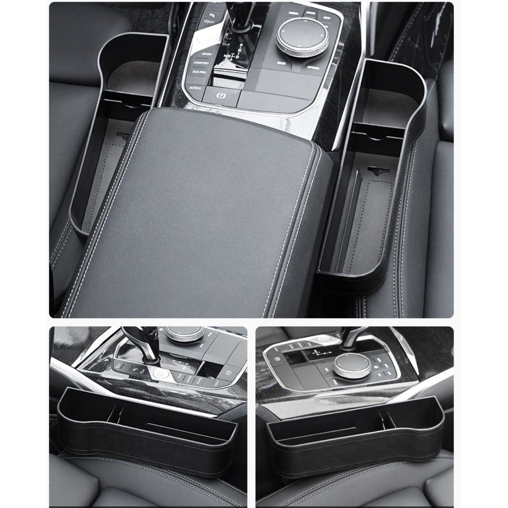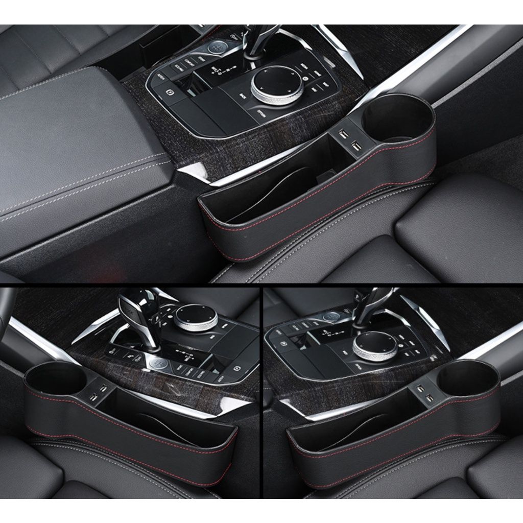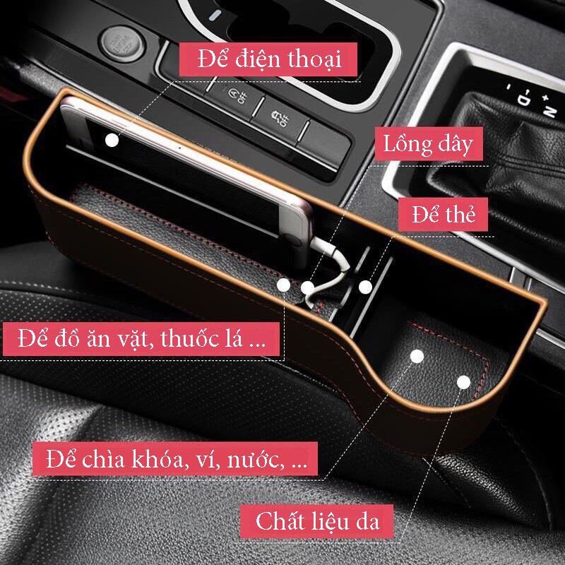 Khay Đựng Đồ Khe Ghế Ô Tô, Hộc Chứa Đồ Bọc Da Cao Cấp Trên Xe Hơi Tích Hợp 2 Cổng USB