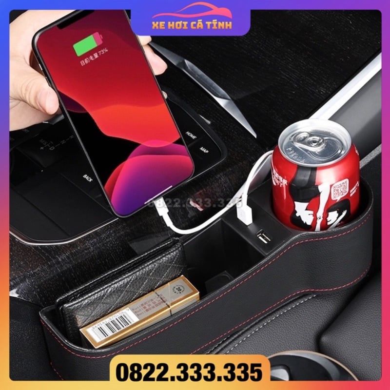 Cặp 2 khay đựng đồ khe ghế ô tô ,hàng cao cấp tích hợp USB sạc nhanh bọc da cao cấp nhiều màu