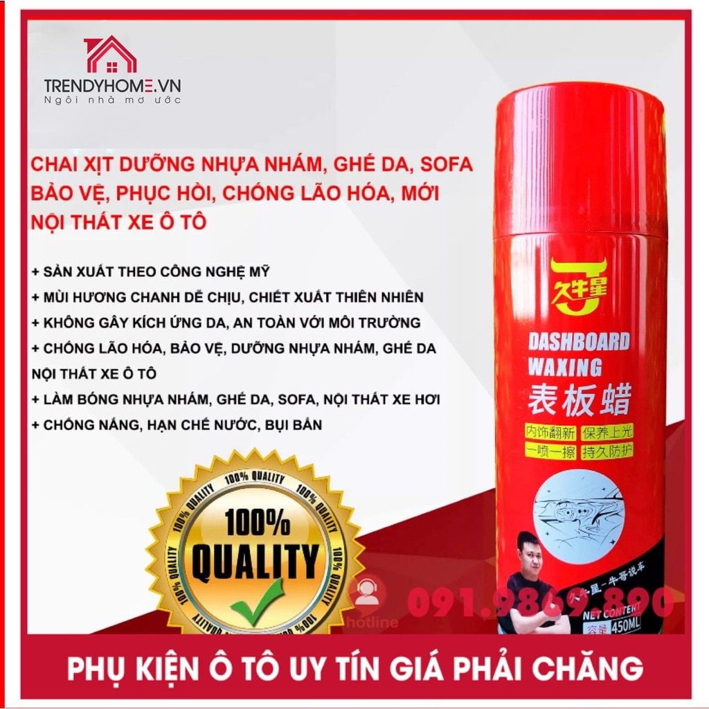 - Mục đích tiêu sử dụng: Bảo dưỡng nhựa nhám, ghế da, sofa - bình phục, khiến cho mới nội thất xe tương đối