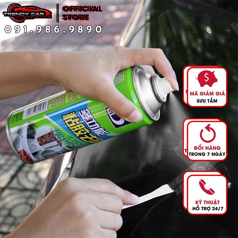 Chai xịt tẩy keo băng dính, cao su bẩn trên bề mặt xe hơi, xe máy, bảng nhựa, bảng viết chữ lâu ngày lau không sạch