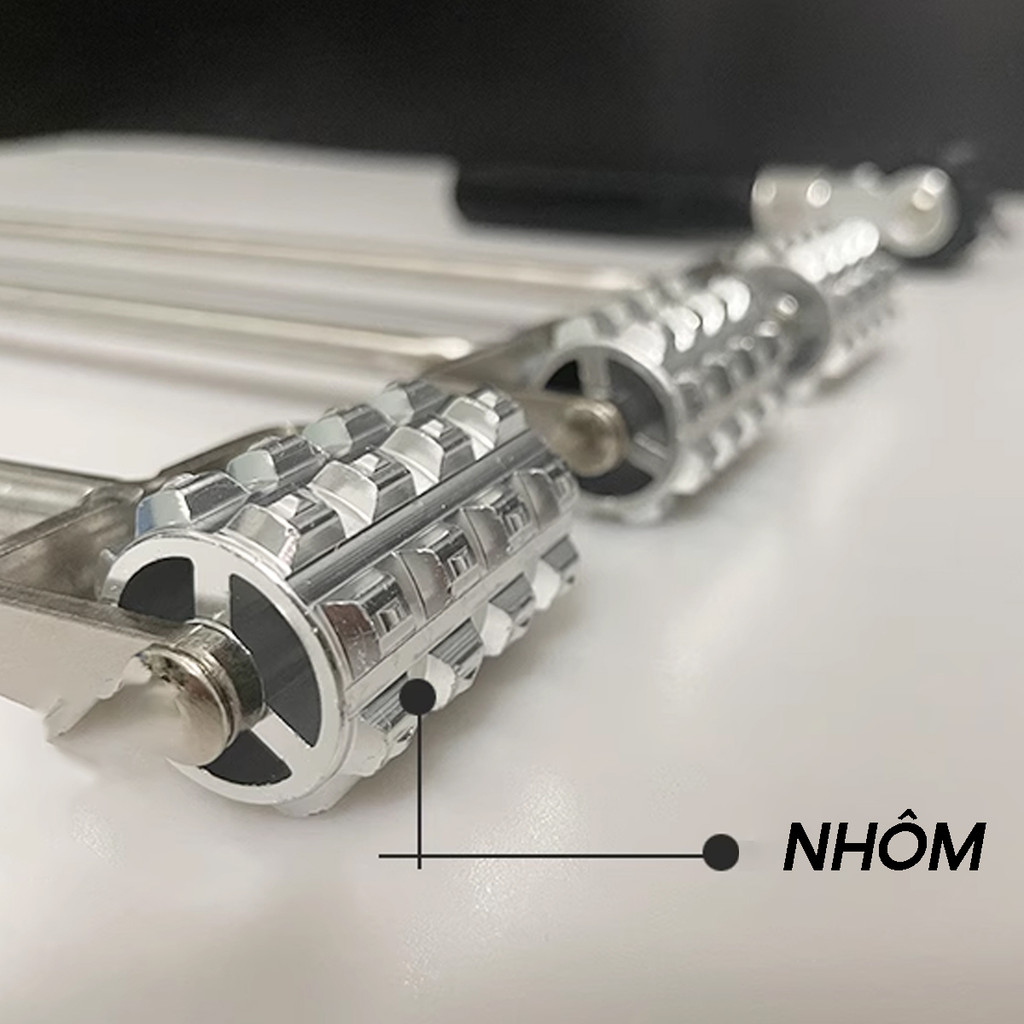 - Chất liệu bền bỉ: Con lăn được làm từ nhôm siêu bền, cùng với thân con lăn bằng thép chắc chắn, đảm bảo độ bền cao trong suốt quá trình sử dụng.