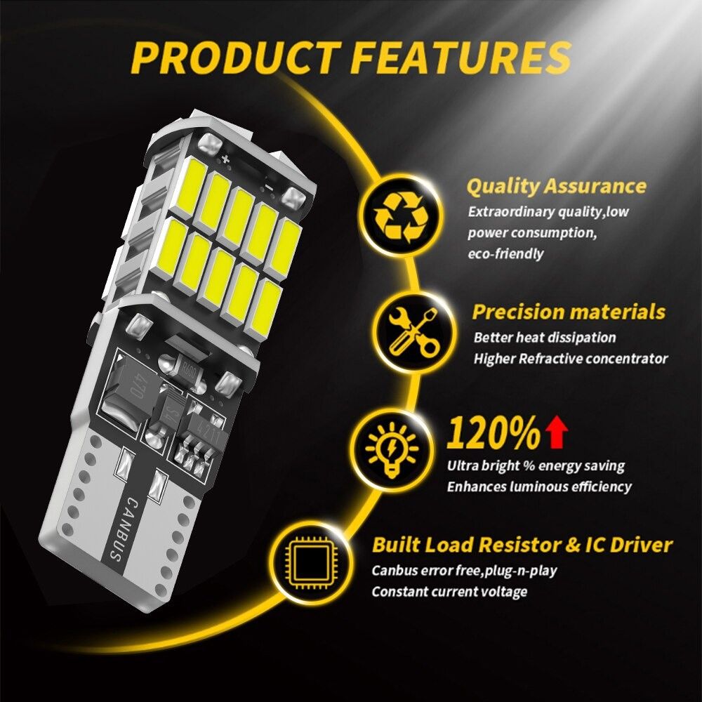 • Đây là đèn LED xe hơi loại T10 với bóng đèn SMD 26, màu sắc trắng, điện áp bình thường là 12V DC và đặc biệt hỗ trợ tính năng CANbus.