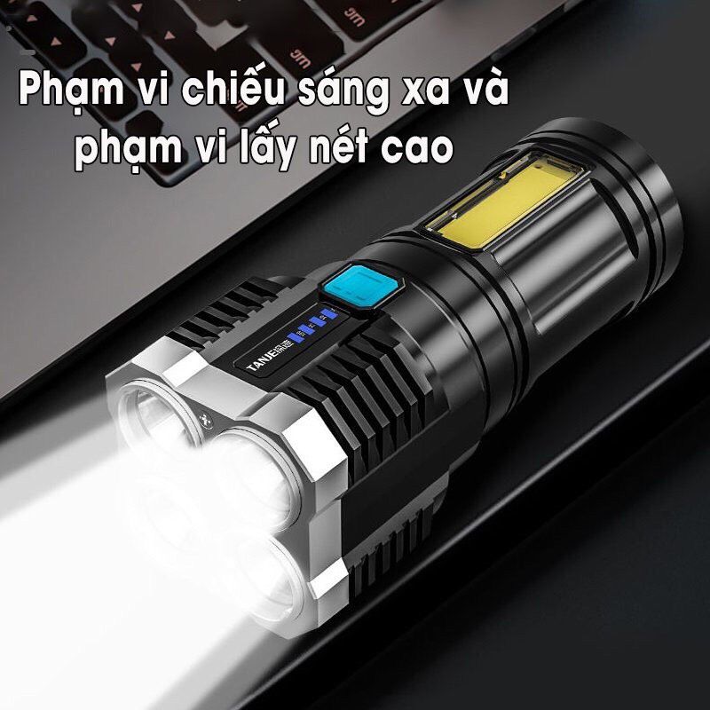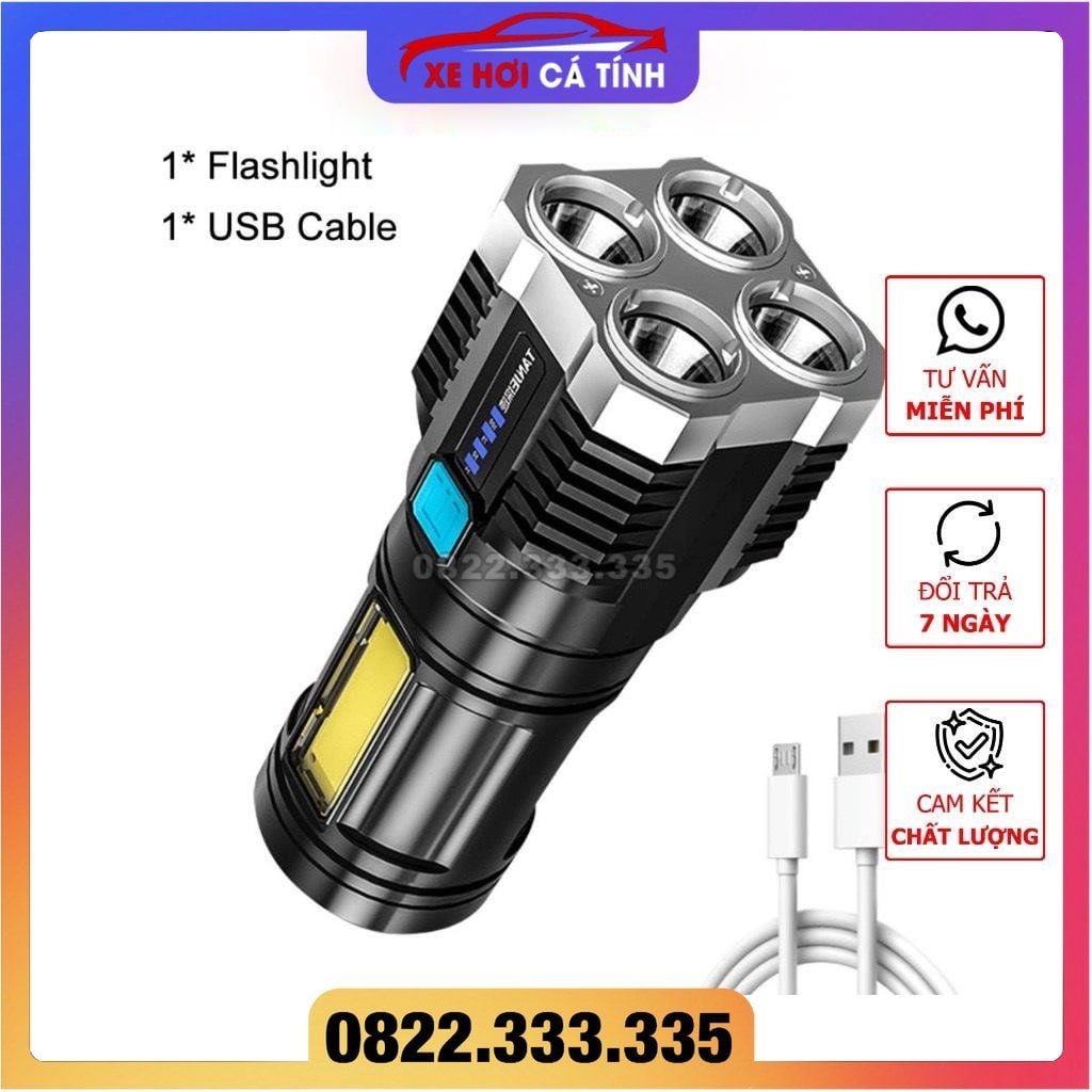Đèn Pin Cầm Tay 4 Bóng Siêu Sáng Siêu Chiếu Xa, Nhiều Chế Độ, Có Đèn Led Hông