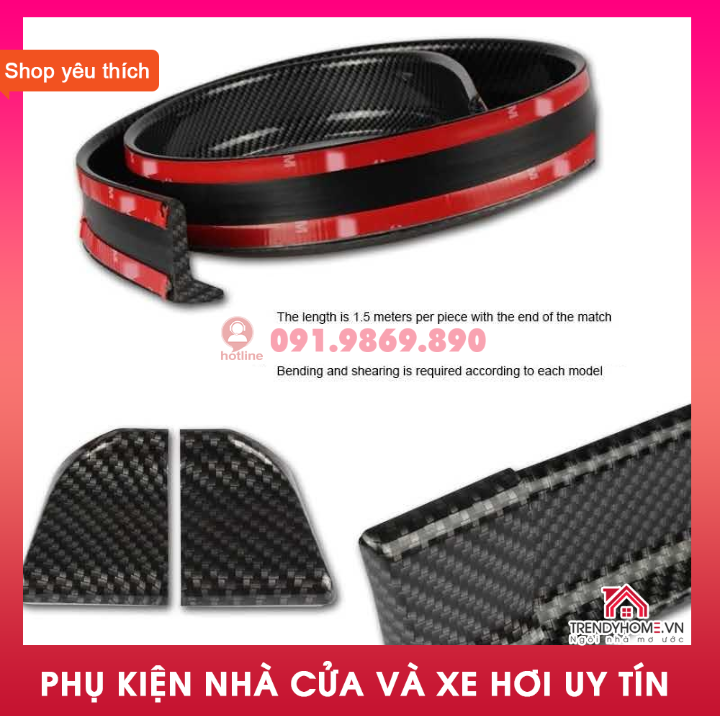 Cuộn cao su vân carbon 3D sử dụng dán trực tiếp lên vỏ xe ở vị trí phía đuôi gió, cánh lướt gió, nóc xe hoặc kính trước hoặc sau.