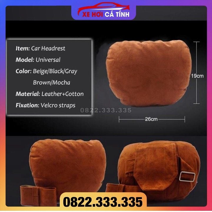 Gối tựa đầu trên xe cao cấp chất liệu vải da lộn nhân tạo alcantara phù hợp cho tất cả loại xe
