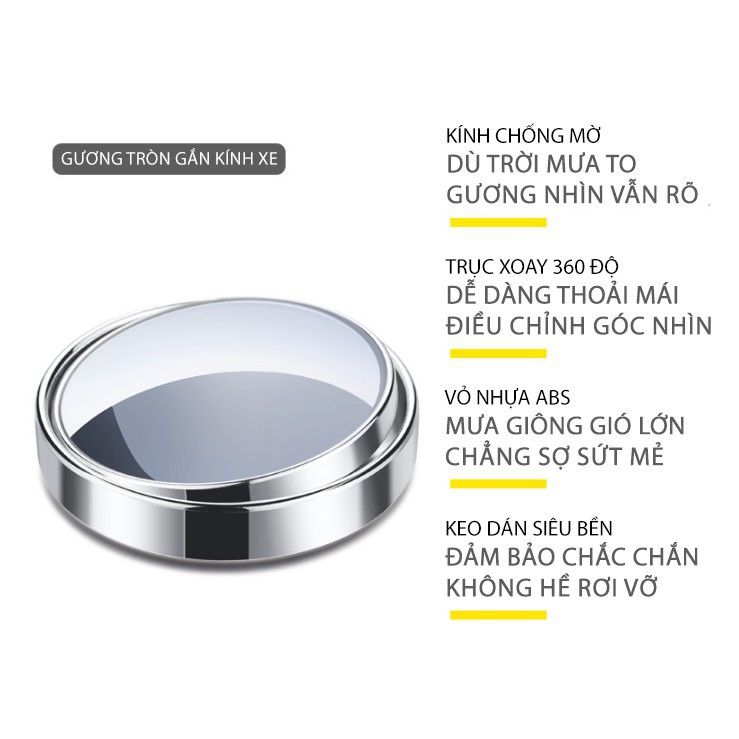 Gương cầu lồi mạ chrome bạc loại xịn dán gương chiếu hậu ô tô, xe hơi xoay 360 độ