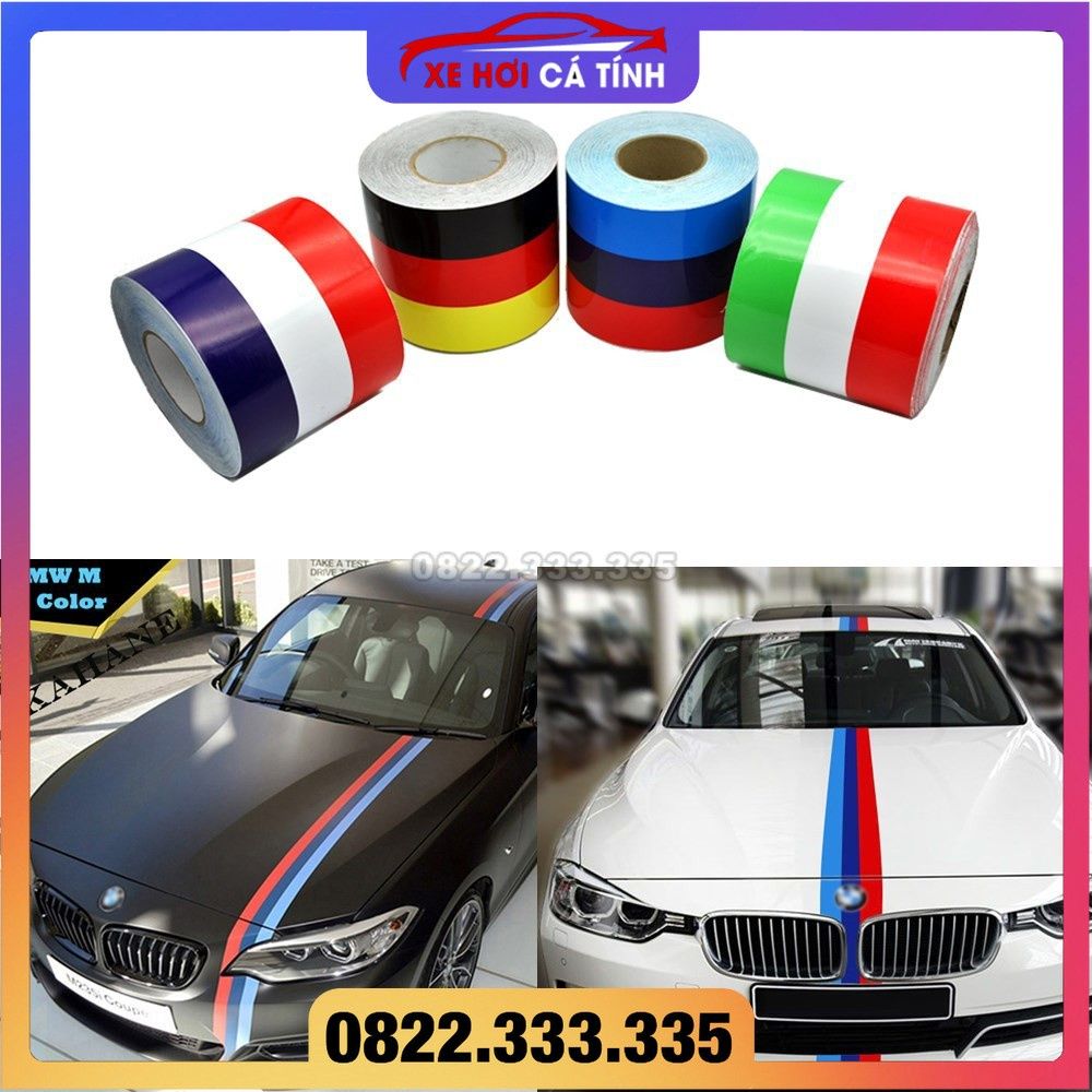 Hình dán xe hơi decal cờ Đức ,Ý, Pháp, M sport dài 1m chất liệu vinyl sẵn keo bóc dính màu sắc nét