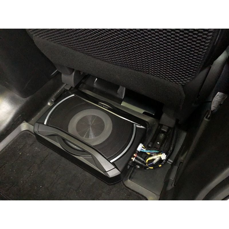 ► Sub điện gầm ghế có ưu điểm rất nhỏ gọn, bạn có thể lắp đặt dưới gầm ghế người lái hoặc bên phụ mà không bị lộ ra bên ngoài gây mất thẩm mĩ và chiếm diện tích trên xe