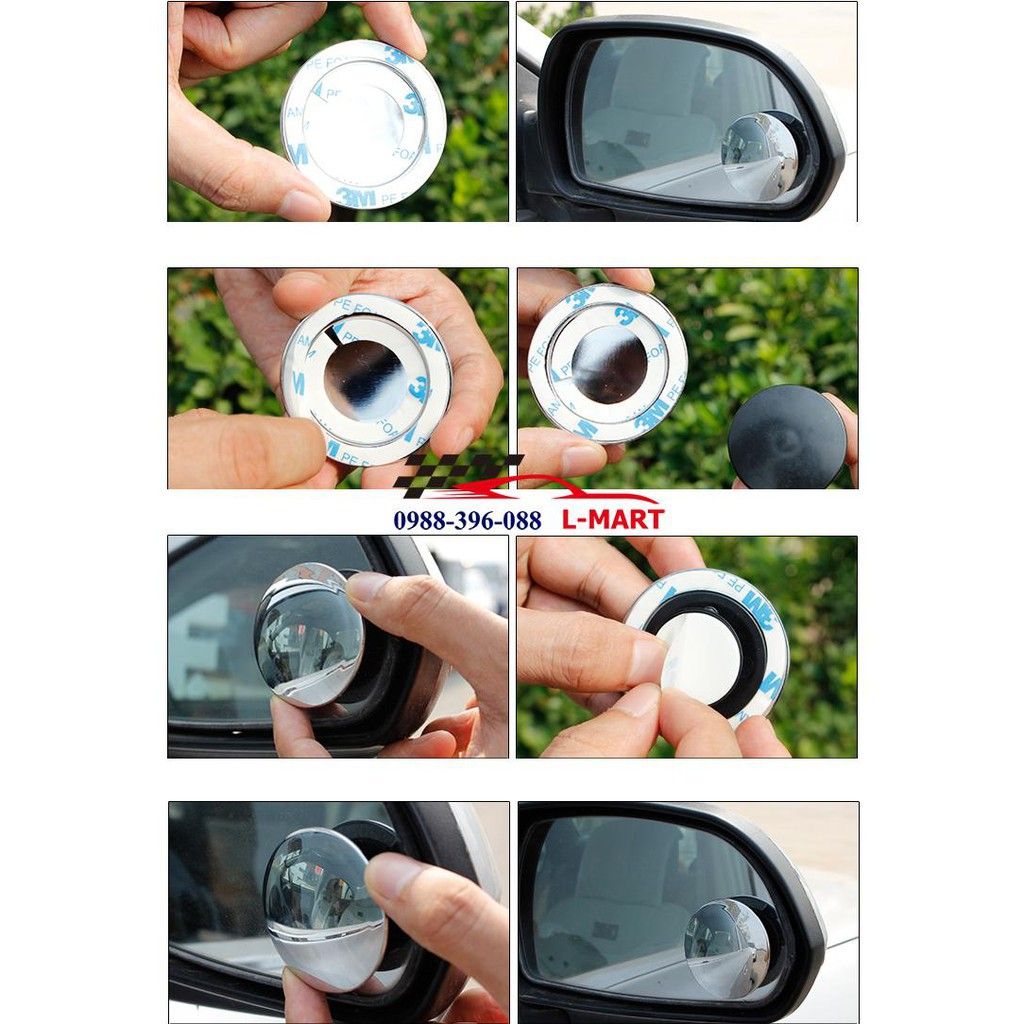 (LOẠI XỊN DÍNH 3M) gương cầu lồi xoay 360 cao cấp cho ô tô, gương mắt cá hình tròn góc rộng 135 độ dành cho xe hơi