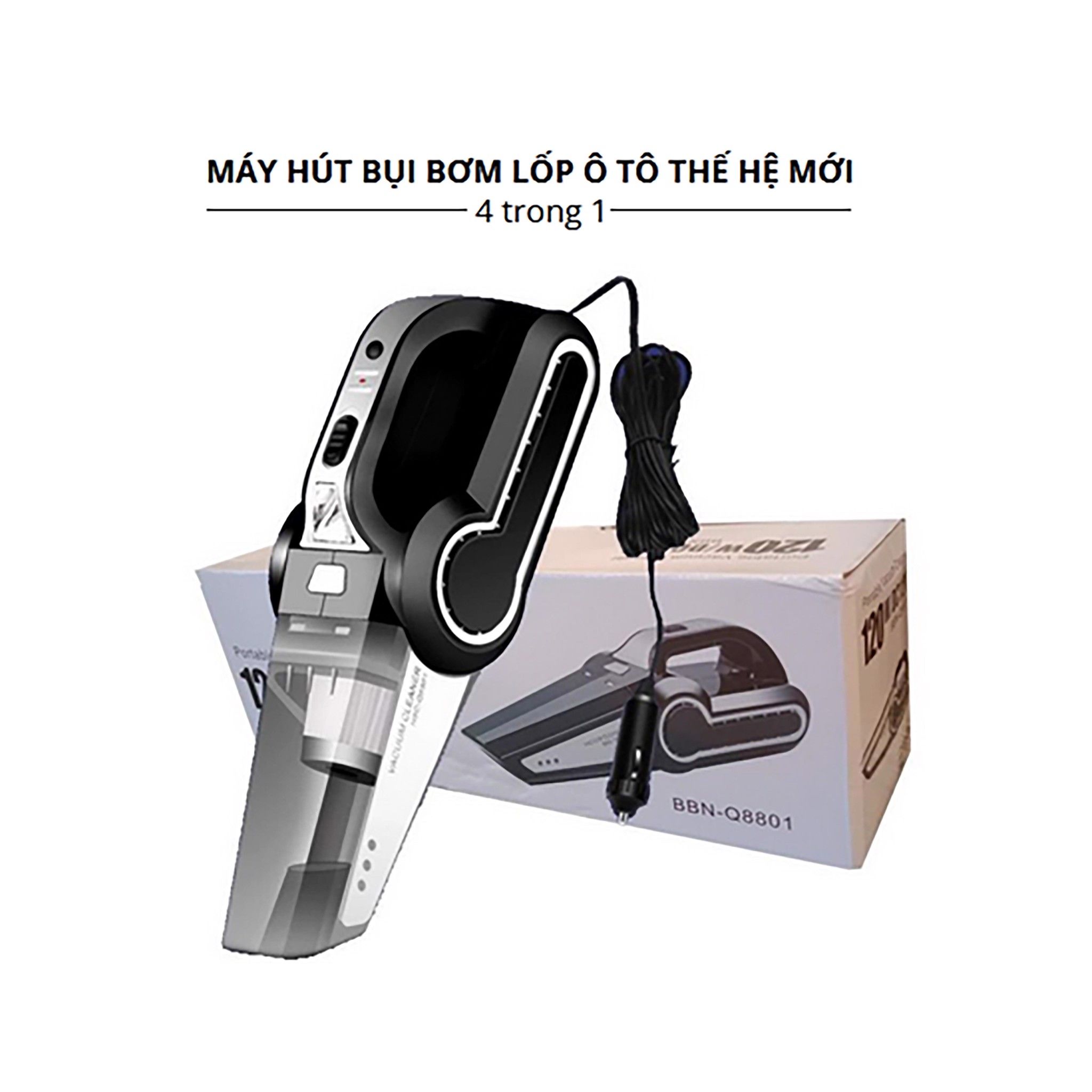 👉 Có dây 4 in 1 :bơm lốp+ hút bụi+ đèn chiếu sáng+ đồng hồ đo áp suất lốp