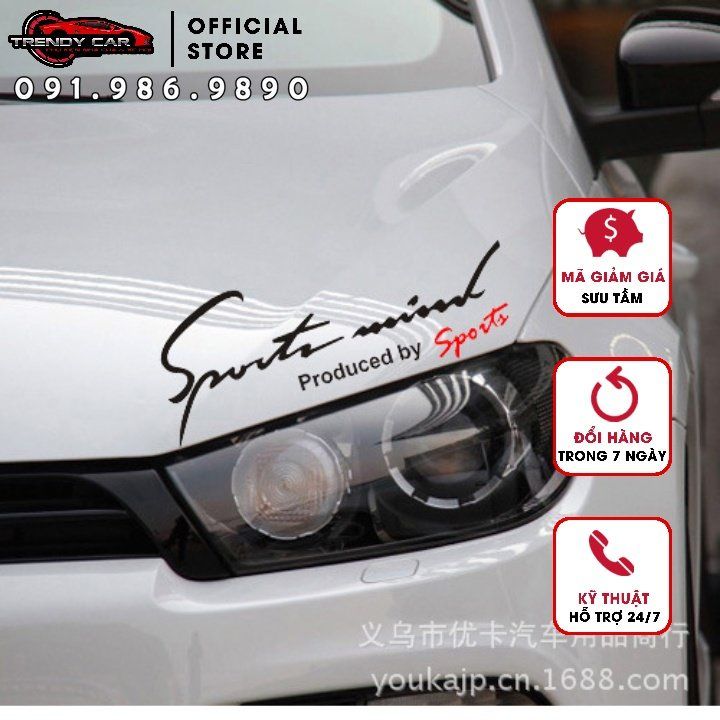 Đặc biết tem dán Sport mind produced by Sport không cần phải nhờ tới thợ hoặc ra cửa hàng, chỉ với 1 vài thao tác đơn giản đã có thể gắn decal lên vị trí bạn chọn (vị trí tốt để dán là ở góc trái hoặc phải dưới capo xe hoặc tùy sở thích).