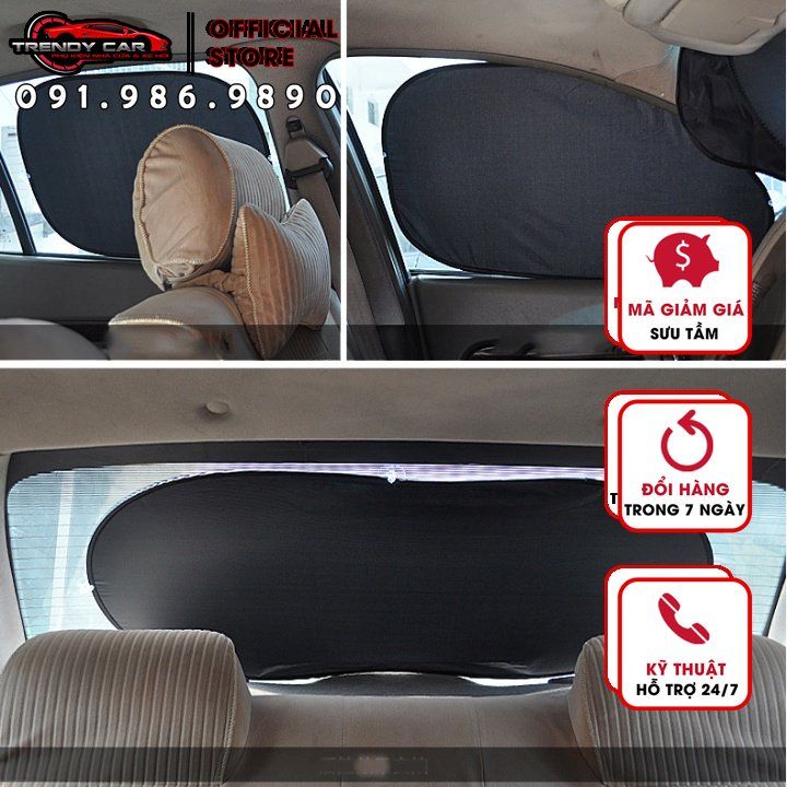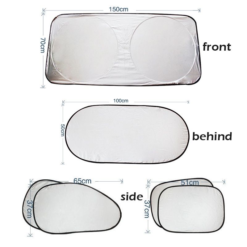 - Bộ sản phẩm gồm: 4 tấm che nắng cánh cửa, 2 tấm che nắng kính hậu phía sau hoặc che kính lái.