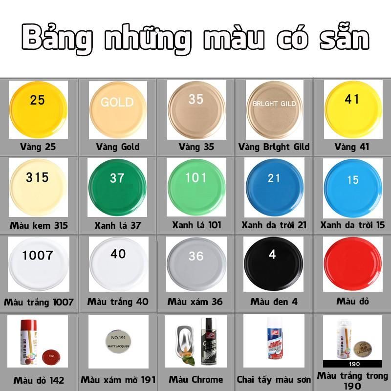 - Công dụng: Sơn xịt theo màu xe, hoặc theo ý mình muốn, vẽ tranh,…..