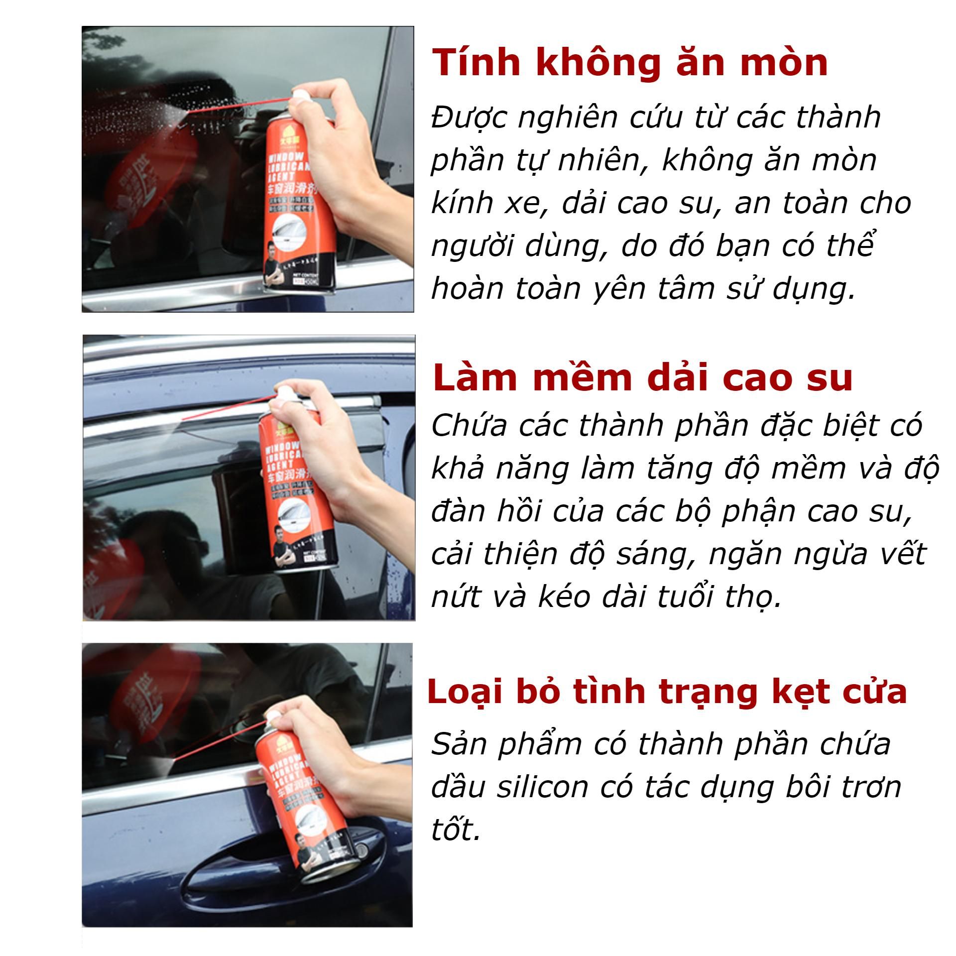 xịt chống Kẹt kính lão hoá cao su bảo dưỡng làm mới bôi trơn gioăng kính, bôi trơn cửa nóc ô tô chuyên dụng