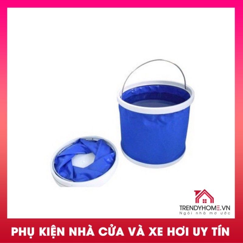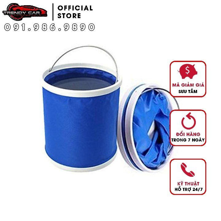 Xô đựng nước gấp gọn 12L với chất liệu vải chống thấm nước và có thể xếp gọn rất tiện lợi cho xe ô tô du lịch, rửa xe hay đi câu.